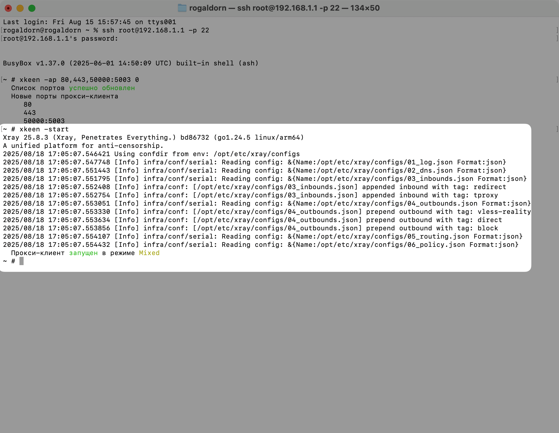 xkeen -ap 80,443,50000:50030