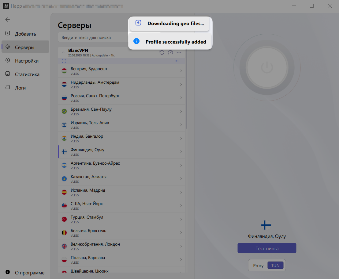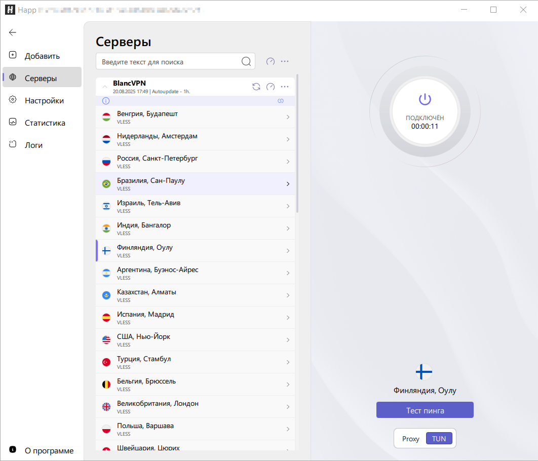 Для настройки BlancVPN с помощью Happ на Windows вам потребуется клиент и ключ доступа протокола V2Ray.
